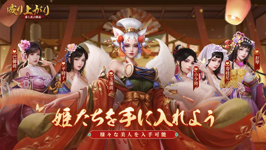 一介の下級武士としてスタートした君が、戦と謀略をフル活用しながら権力の階段を駆け上がるその過程で、色鮮やかな和装美女たちとガッツリ出会って政略結婚しちゃうんだよ!